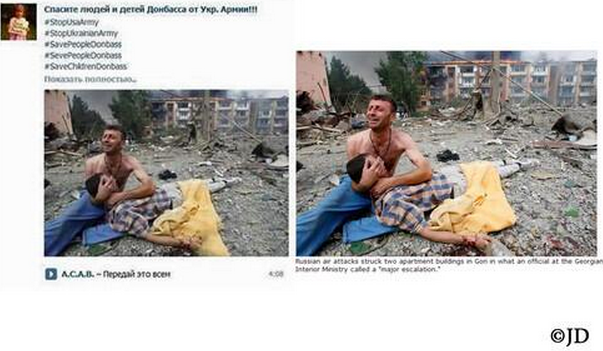 10.30 В сети продолжают появляться лживые сообщения, на которых опубликованы фотографии якобы с разрушениями и смертями на Донбассе. В этот раз за Донецкую область выдают последствия российской бомбардировки Грузии в 2008.