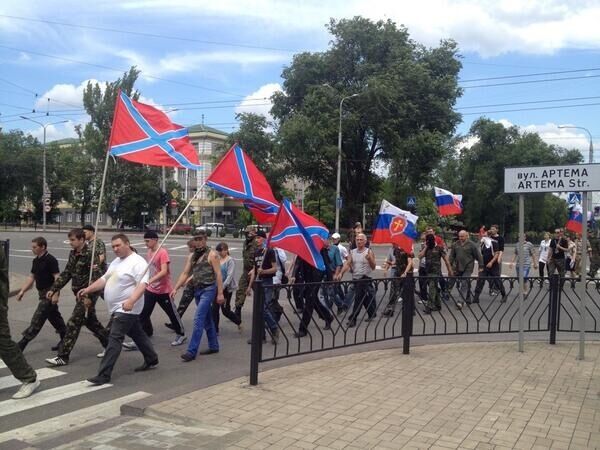 15.45 Несколько сотен пророссийских активистов решили пройти маршем по центру Харькова. Вокруг много милиции.
