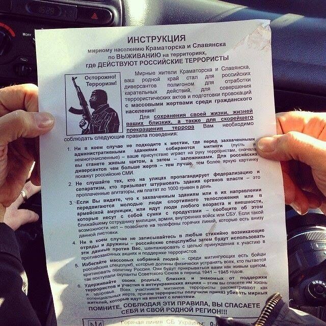 00.44 Вот за такие листовки "Народный мэр" Славянска Вячеслав Пономарев обещал "расстреливать на месте".