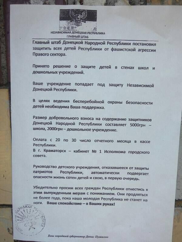 12.55 Боевики сепаратистов собирают дань в школах и детских садах.