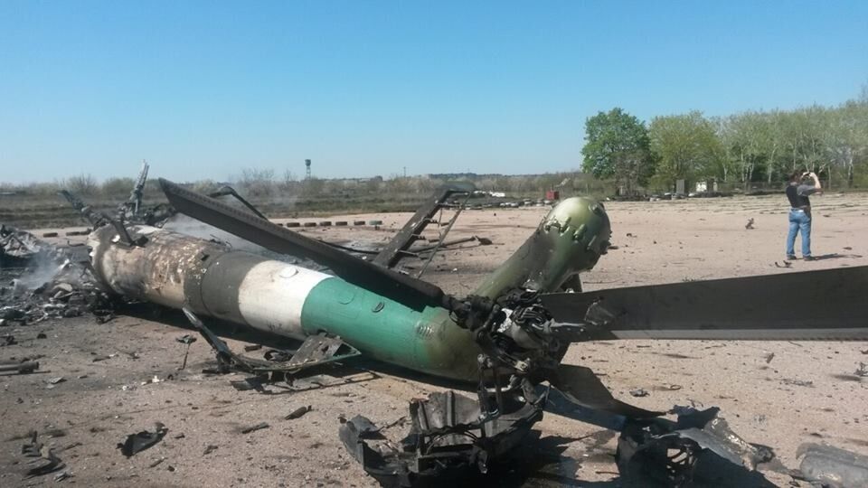 19.55 Остатки вертолета Ми-8 после нападения боевиков на аэропорт в Краматорске.