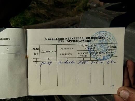 Министр также продемонстрировал учетную книжку захваченного БТРа, на котором стоит печать российской воинской части.