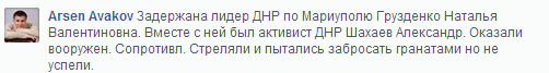 Куратор террористов по Мариуполю Наталия Грузденко оказывала вооруженное сопротивление при задержании, заявил министр внутренних дел Украины Арсен Аваков.