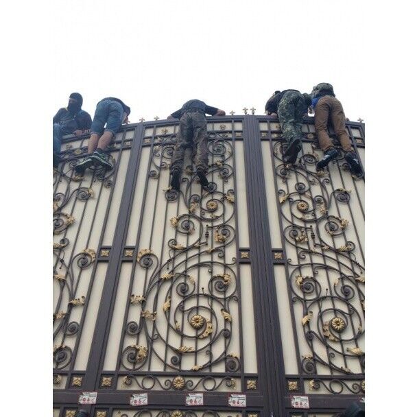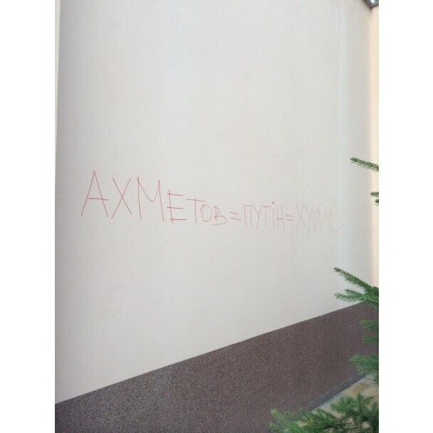 Некоторыеактивистыво время пикета залезли на огромный забор, ограждающий имение миллиардера и оставили Ахметову " напамять"нецензурныенадписи.