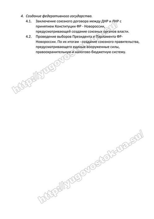 В планах сепаратистов – принятие Конституции нового государства, формирование органов власти, проведение парламентских и президентских выборов. Кроме того, сепаратисты планируют обратится к России, Беларуси и Казахстану с просьбой о присоединении новосозданной республики к единой таможенной территории, а также призвать ОБСЕ и ООН ввести санкции против киевских властей.