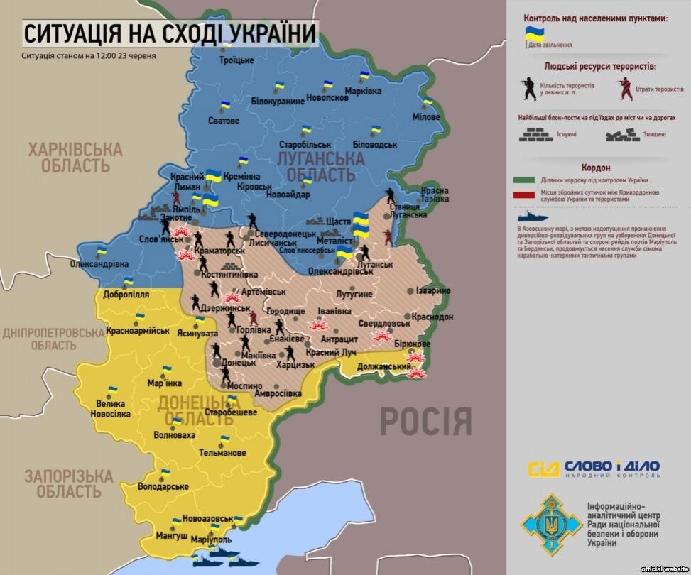 Совет национальной безопасности и обороны опубликовал карту антитеррористической операции, сообщает "Радіо Свобода".