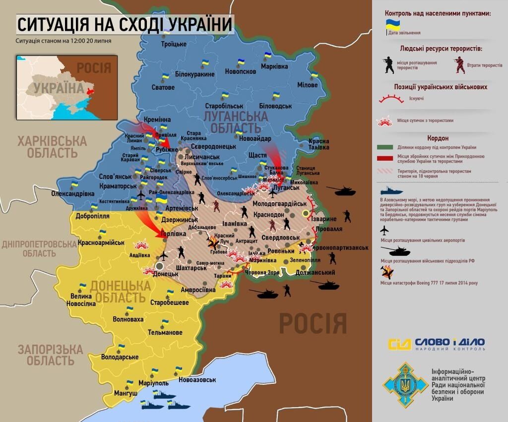 Наступают силы АТО и в Луганской области. Так, сегодня им удалось освободить от террористов город Рубежное, а также заблокировать Лисичанск, из которого ночью террористы предприняли несколько попыток прорваться.