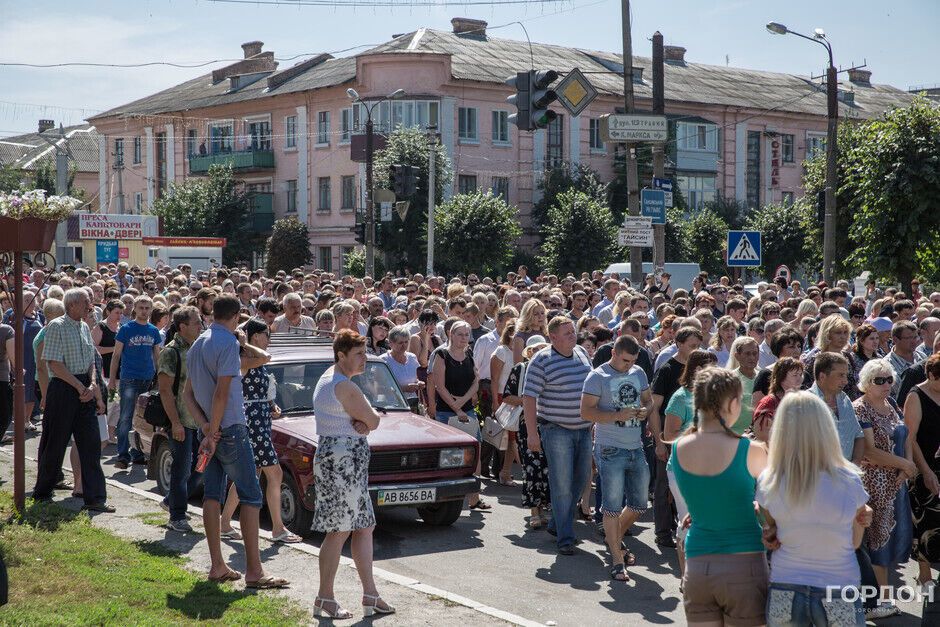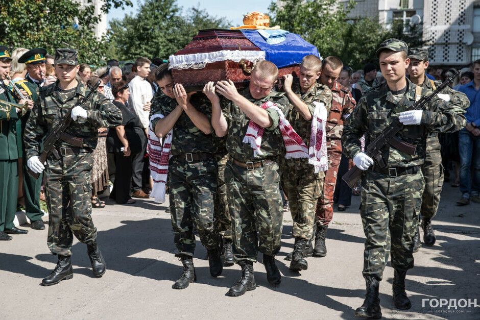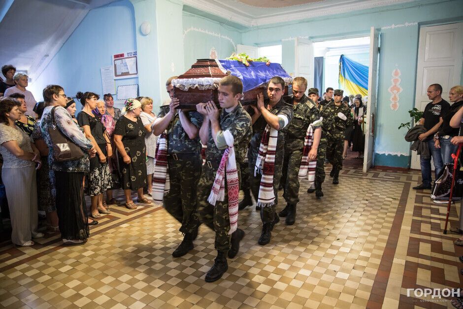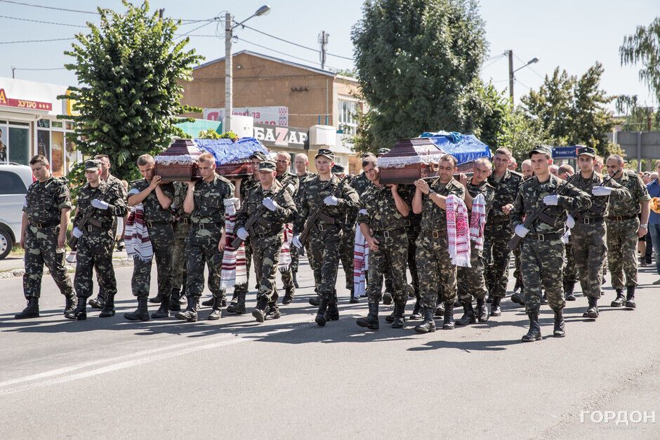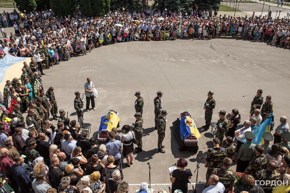 На прошлой неделе в небольшом городке Гайсин Винницкой область провели в последний путь двух добровольцев батальона "Айдар", которые погибли под Луганском 27 июля. В зоне проведения антитеррористической операции 23-летний Станислав Менюк и 52-летний Сергей Коврыга пробыли меньше двух недель. Проститься с земляками прошли сотни людей. Траурная церемония состоялась в центре города – на площади Мира. Похоронили бойцов с воинскими почестями.