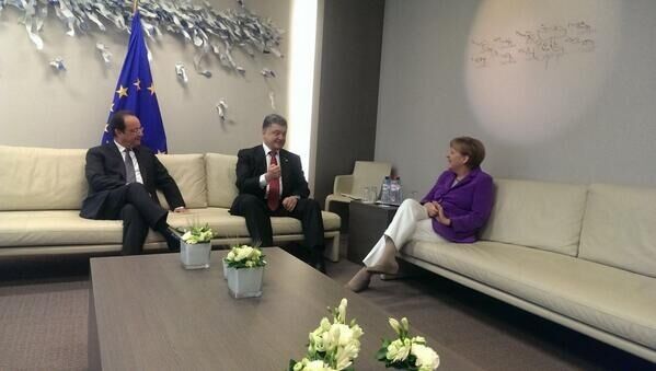 11.25 После подписания Соглашения об ассоциации с ЕС Петр Порошенко начал переговоры с канцлером Германии Ангелой Меркель и президентом Франции Франсуа Олландом.