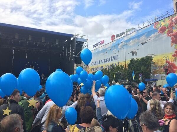 16.35 На Майдане в Киеве празднуют подписание Соглашения об ассоциации. Играет "Ода к радости", гимн объединенной Европы.