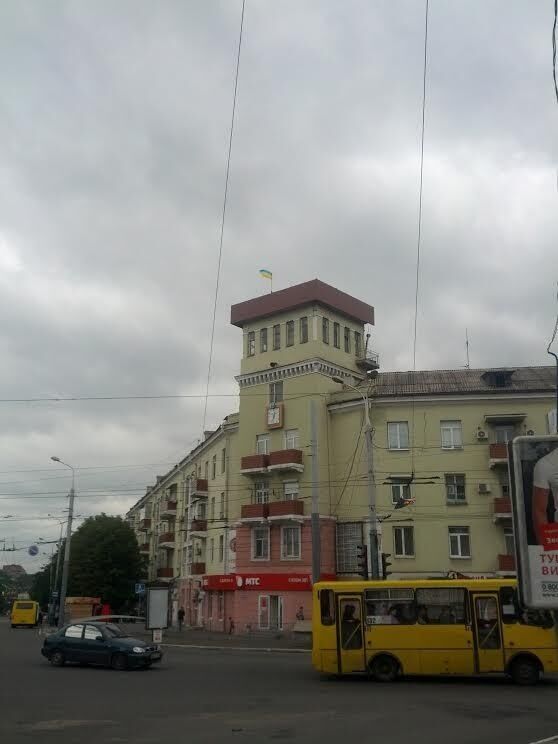 13.09 В центре Мариуполя на башне с часами развевается украинский флаг. Мало что напоминает о том, что еще недавно город находился под контролем боевиков.