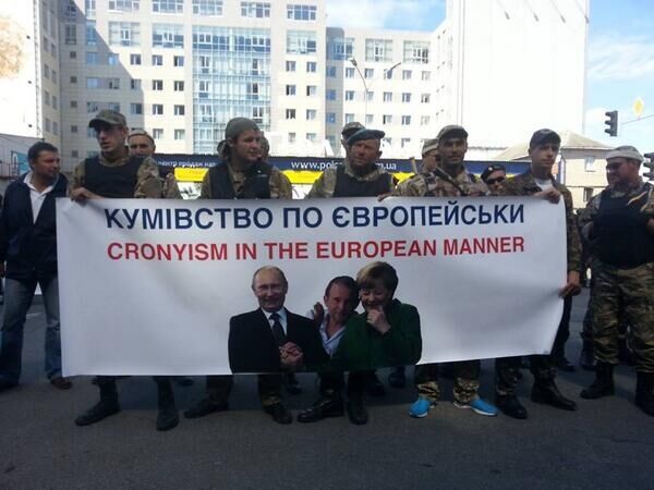 11.37 Активисты Майдана в Киеве пикетируют посольство ЕС, протестуя против предложения Ангелы Меркель сделать Медведчука официальным переговорщиком по ситуации на востоке.
