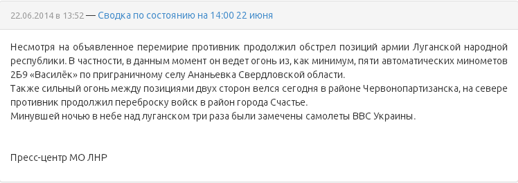 Как сообщает сайт так называемой Луганской народной республики, по селу Ананьевка Свердловской области пять минометов украинских силовиков вели огонь.