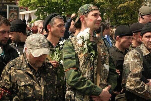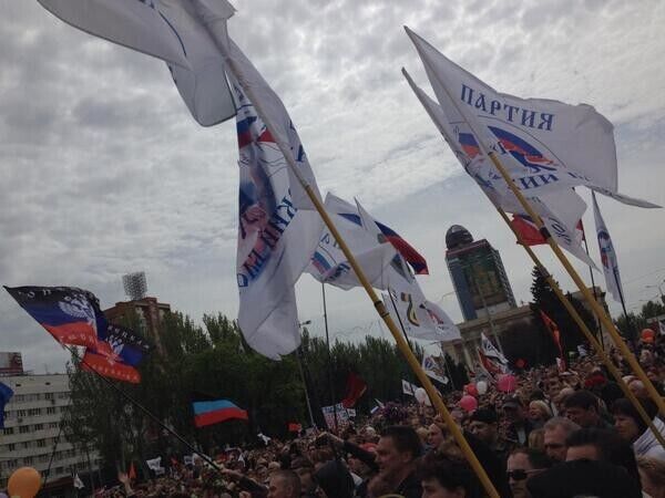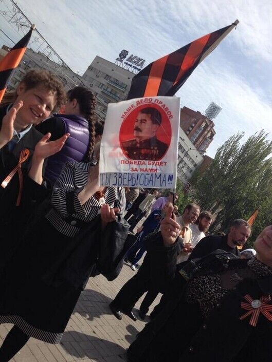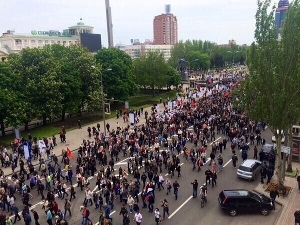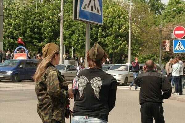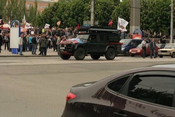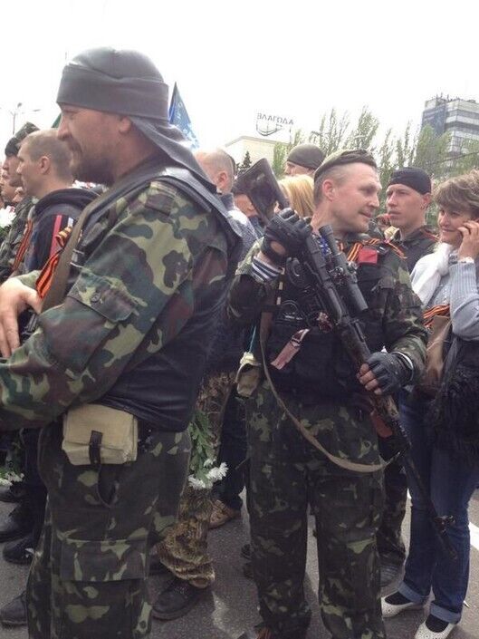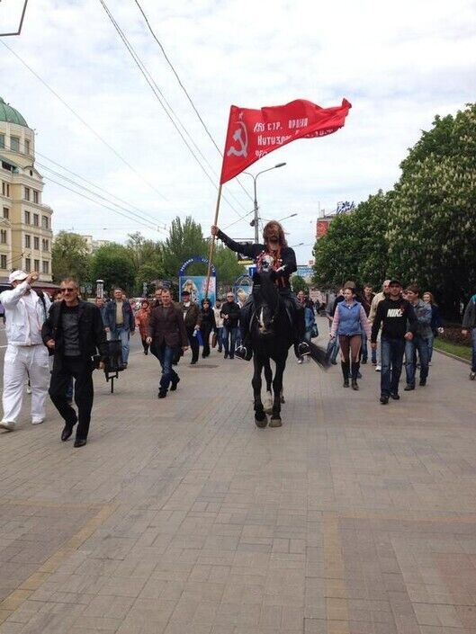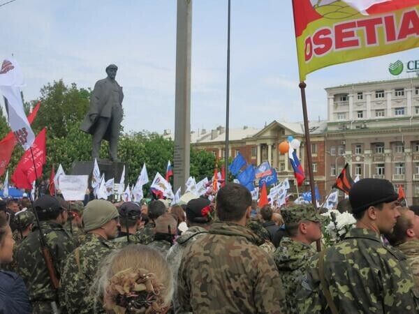 Митинг ко Дню Победы в Донецке. Вооруженные сепаратисты с Джигурдой на коне. Фоторепортаж