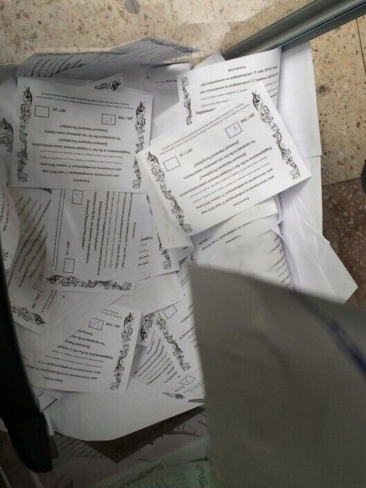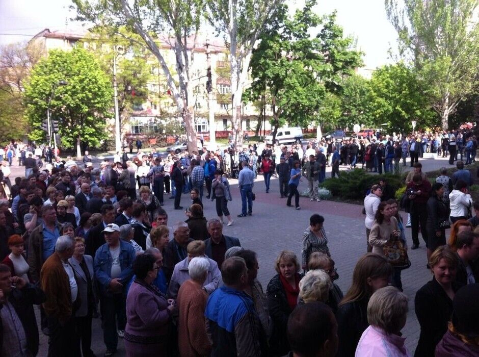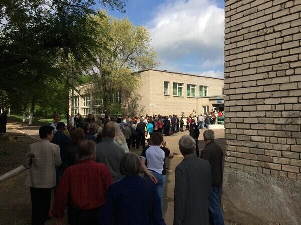 Поскольку "избирательных участков" для голосования на "референдуме" 11 мая даже в самых больших городах немного, возле них к открытию голосования в 8 утра выстроились большие очереди. Как сообщают наблюдатели, особого контроля за процедурой голосования никто не осуществляет, позволяется голосовать двумя бюллетенями, кроме того в Донецке существует специальный участок для голосующих, не прописанных в городе.
