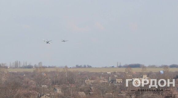 В то же время корреспондент Gordonua.com сообщает, что что до сих в небе видны истребитель и штурмовик, которых прикрывают два военных вертолета.