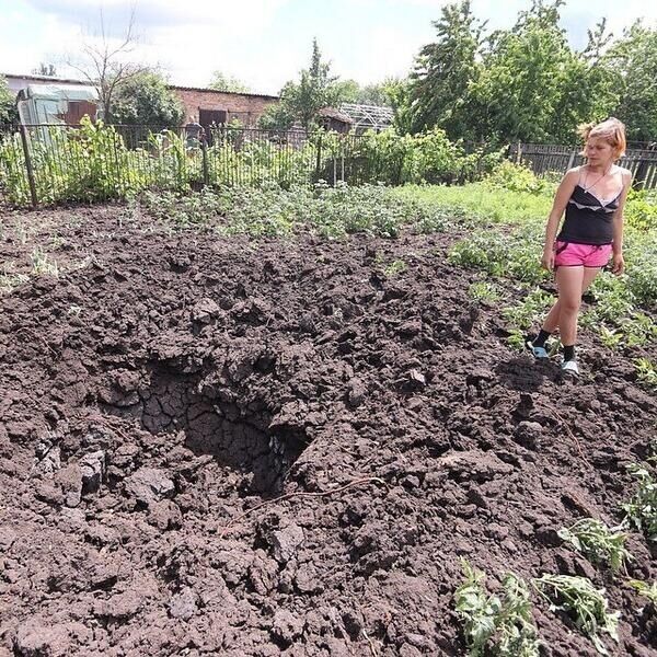 18.44 В поселке Семеновка под Славянском снаряды попадают прямо на огороды к мирным жителям.