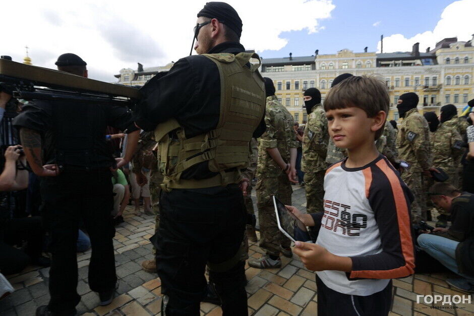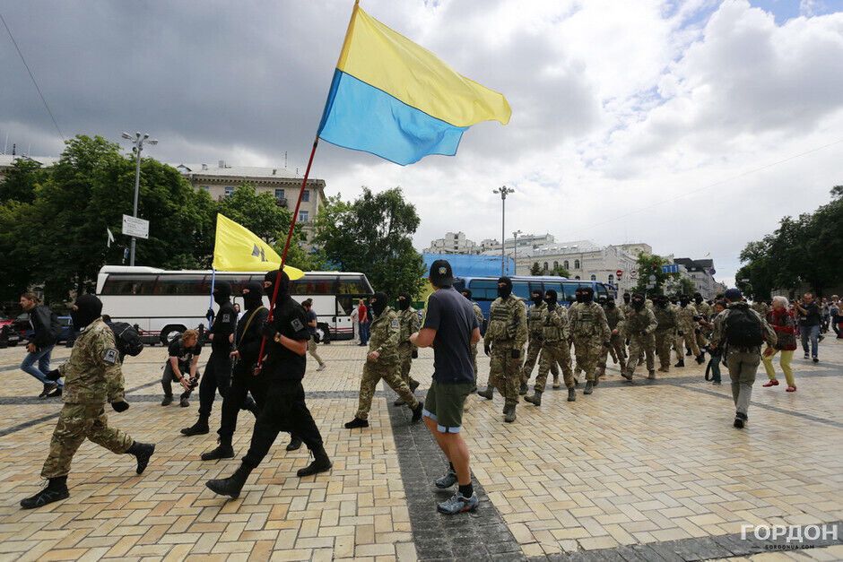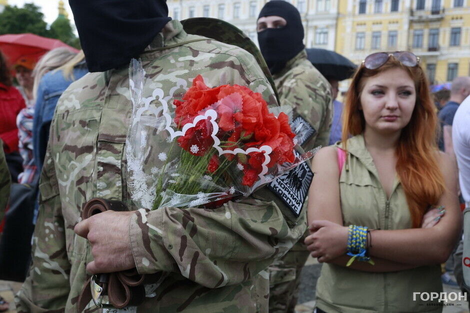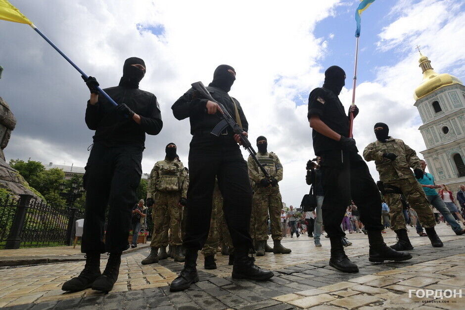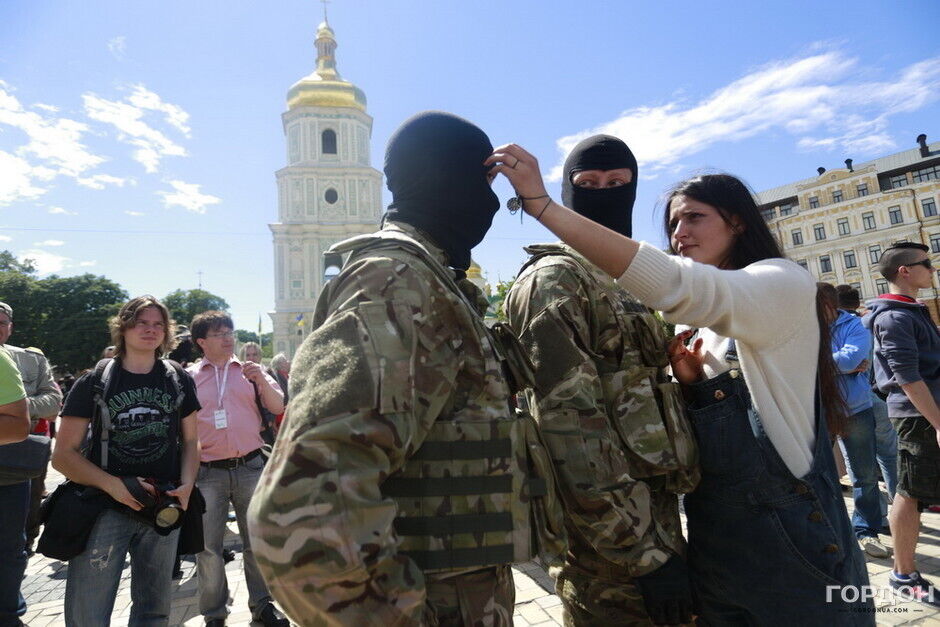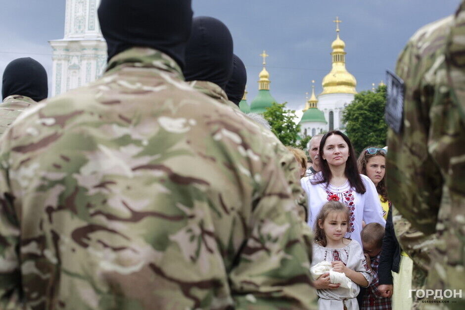 23 июня на Софийской площади бойцы третьей сотни добровольческого батальона "Азов", прочитав молитву, приняли присягу на верность украинскому народу.
