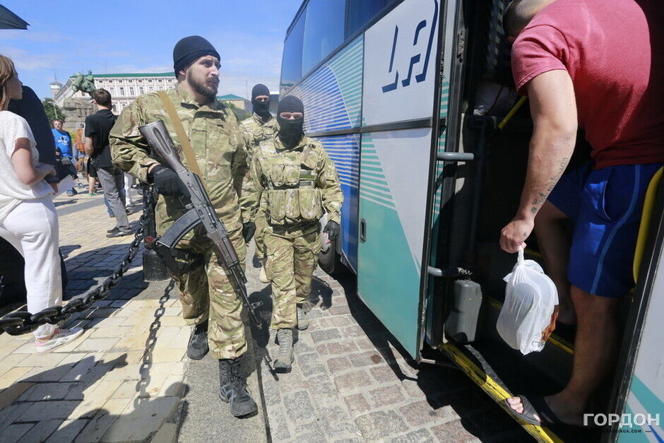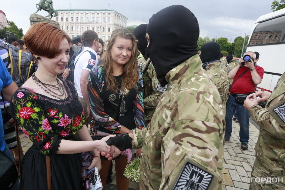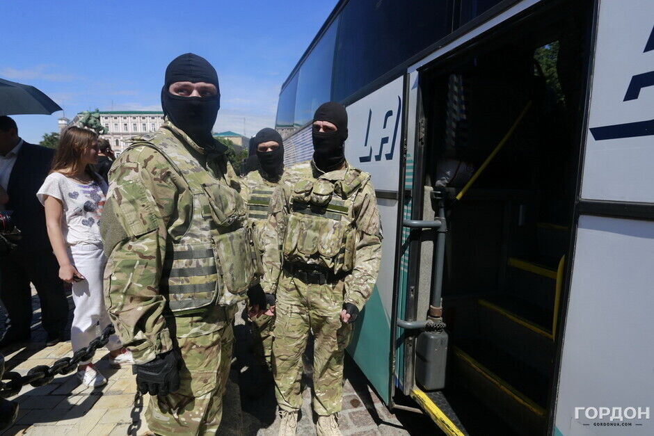 Несколько предыдущих недель добровольцы проходили первичные тренировки на базе в Киеве и сегодня отправились в Бердянск Запорожской области для завершения военной подготовки непосредственно вблизи мест боевых действий.