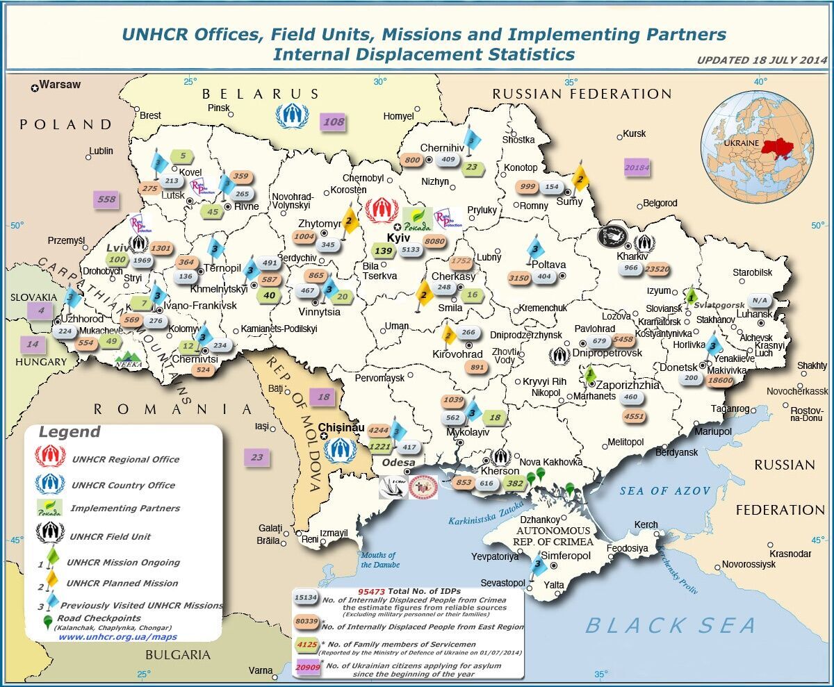 К 14 июля количество переселенцев с востока Украины и из Крыма составляло 87 тысяч человек.