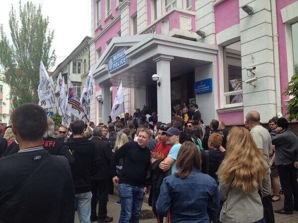 14.23 Около 1000 протестующих окружили отделение милиции Донецка. Представители милиции заявляют, что они "с народом".