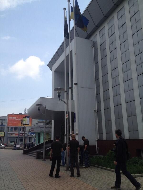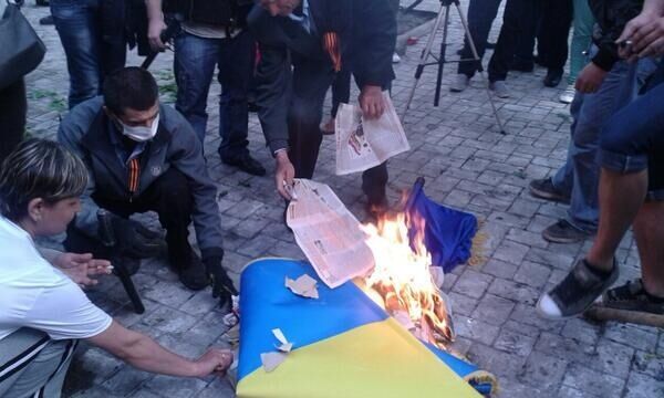 17.30 Сепаратисты, захватившие прокуратуру Донецка, сожгли украинский флаг.