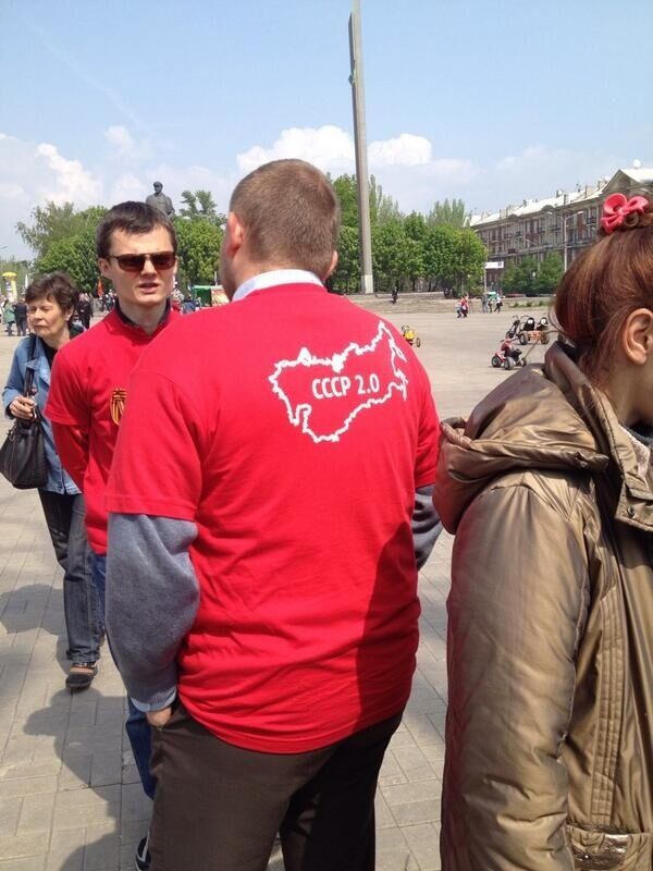 11.46 В Донецке люди ходят в футболках с символикой новой версии СССР.