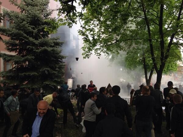 15.34 Сепаратисты пошли на штурм донецкой прокуратуры. В ход идут светошумовые гранаты, камни и петарды. "Сегодня" сообщает, что с обеих сторон есть раненые.