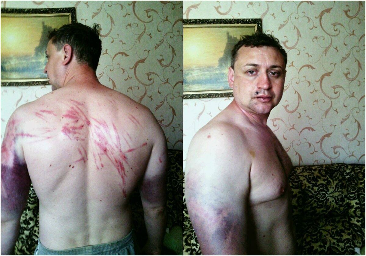 На фото, которые Косяк разместил на своей странице в Facebook после освобождения, видно, что у него большие синяки на руках, исполосована вся спина.