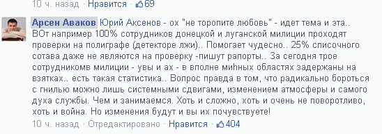"100% сотрудников донецкой и луганской милиции проходят проверки на полиграфе. Помогает чудесно – 25% списочного состава даже не являются на проверку – пишут рапорты", – сообщил министр.