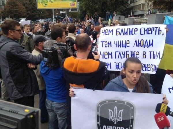 Под зданием Министерства обороны в Киеве проходит митинг. В настоящее время там собралось около 300 человек. Люди требуют выдать батальонам, которые сейчас находятся в зоне АТО на востоке Украины, тяжелую технику и вооружение. Активист Егор Соболев озвучил требования митингующих: деблокировать Иловайск; предоставить батальонам танки и артиллерию; отправить в отставку министра обороны Валерия Гелетея.