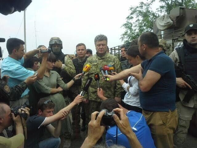 Президент Украины Петр Порошенко посетил штаб антитеррористической операции (АТО) в Изюме и приехал в Святогорск Донецкой области. Порошенко привез в лагерь Нацгвардии военное снаряжение – тепловизоры и бинокли, а также вручил награды украинским военным. Во время общения с жителями президент заявил, что АТО прекращается до 27 июня, чтобы террористы могли сложить оружие.