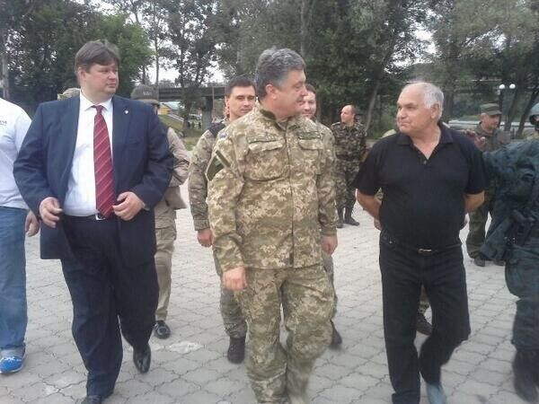 Вместе с президентом в штабе находятся министр МВД Арсений Аваков, секретарь СНБО Андрей Парубий и командующий Нацгвардией Степан Полторак, сообщает сайт главы государства.