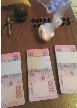 Во время задержания у него изъято 100 тысяч гривен наличными, гранату РГД-5, патроны к огнестрельному оружию и 300 граммов наркотического вещества.