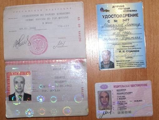 При задержании у Михайлова были изъяты граната с запалом, штык-нож, карты с местностью Донецкой и Луганской областей, удостоверение, подписанное лидером боевиков "ДНР" Игорем Гиркиным, и паспорт гражданина РФ с московской пропиской.