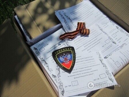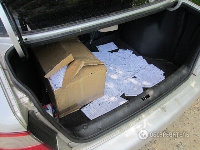 При осмотре автомобиля Daewoo Lanos, на котором передвигались задержанные, были выявлены ящики с уже заполненными бюллетенями для голосования на "референдуме" о поддержании Акта независимости так называемой Донецкой народной республики (ДНР). По данным источника, общее количество бюллетеней превышает 100 тысяч. На всех из них уже проставлены отметки в графе "ДА", означающей поддержку независимости ДНР.