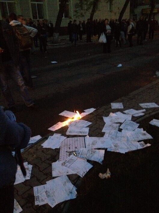 В Донецке сепаратисты разгромили и подожгли офис "Индустриального союза Донбасса". Фоторепортаж