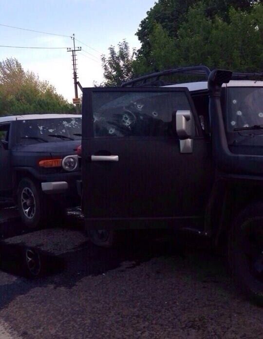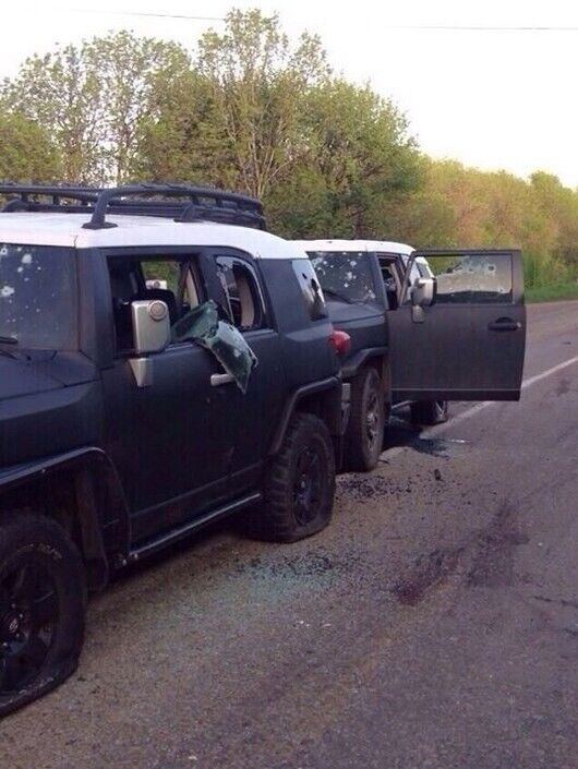 Очевидцы сообщили, что машины не остановились на блокпосту, поэтому боевики их расстреляли из автоматов.