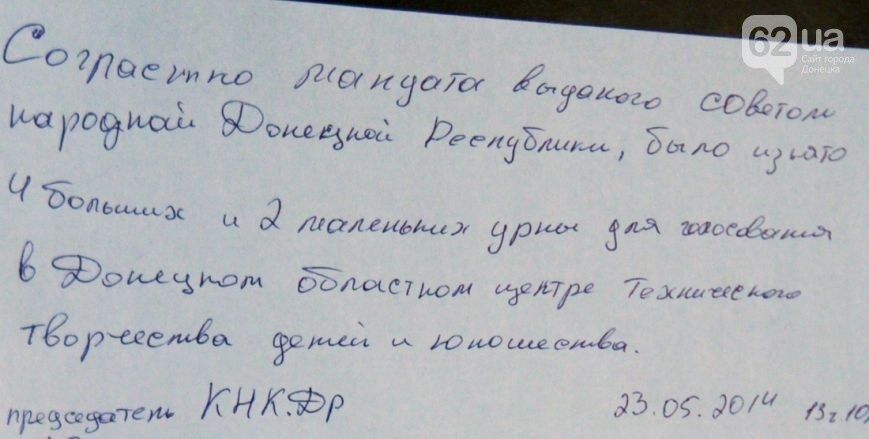 Основанием для изъятия урн террористы назвали некий "мандат ДНР", согласно которому сотрудники центра составили расписку.