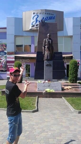 Один из подростков, луганчанин Николай Еременко, разместил фотографию со средним пальцем на фоне памятника на аватаре в соцсети Вконтакте. Фото до сих пор доступно. На его странице есть перепосты сообществ "Антимайдан", "ДНР", фотографии, которые показывают его неуважение к Украине.