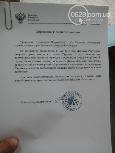 "Военный комендант" Мариуполя просит украинских военных перейти на сторону сепаратистов