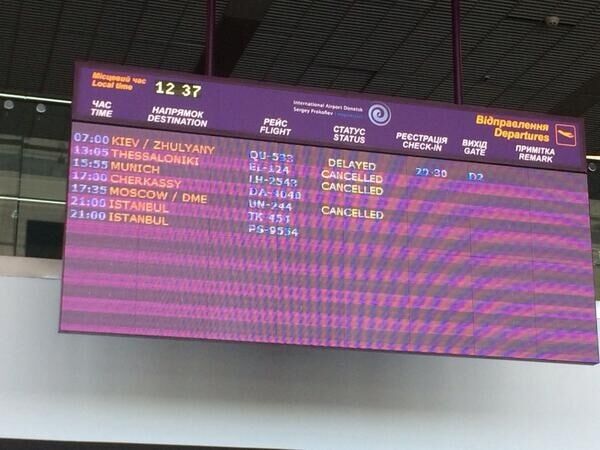 12.29 Аэропорт Донецка работает, но рейсы пока что не выполняются.