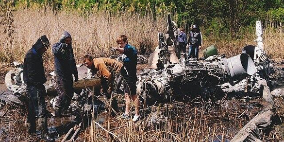 16.54 В Славянске местные жители разбирают сбитый вертолет Ми-24 на металлолом.