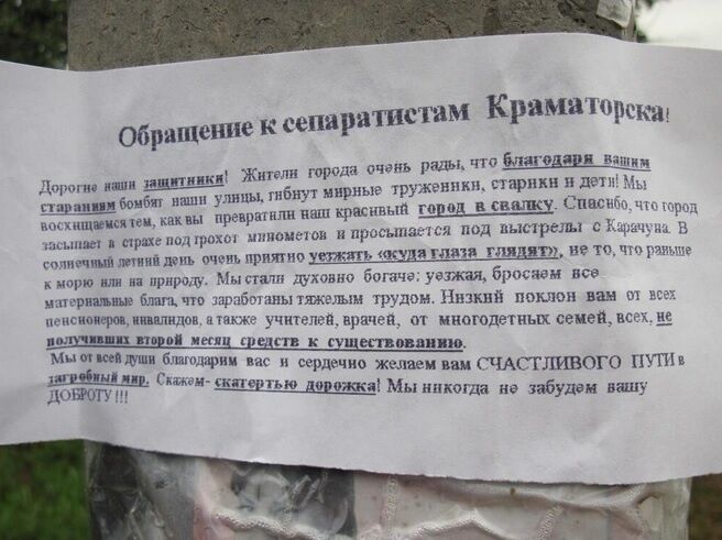 Жители Краматорска – сепаратистам: Счастливого пути в загробный мир
