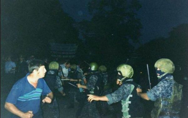 Позже, в июле того же года, забастовки начались в Луганской области. Шахтеры требовали выплаты зарплат, задолженность по которым в некоторых случаях достигала двух лет. Горняки разбили постоянный лагерь у здания Луганской облгосадминистрации и требовали погашения долгов. 24 августа шахтеры намеревались отметить День независимости факельным шествием и сжиганием чучела “паразита”. На место проведения мероприятия прибыли бойцы “Беркута”, которые под предлогом поиска взрывчатки разогнали шахтерскую демонстрацию. Это был первый случай в истории независимой Украины, когда милиция разгоняла протест с использованием спецсредств – дубинок и слезоточивого газа. В драке пострадали 22 шахтера и 12 сотрудников “Беркута”, однако подавить протест силовыми действиями не удалось.