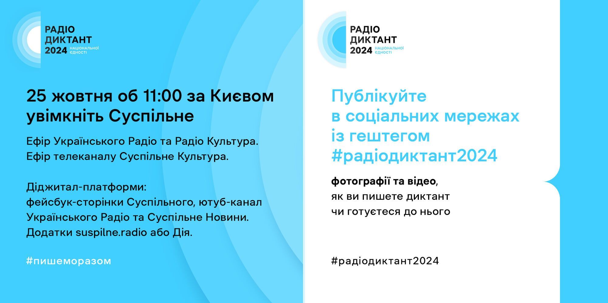 Текст радиодиктанта будет обнародован 28 октября в 11.00 на сайте "Українського радіо" и на сайте "Суспільне Культура".