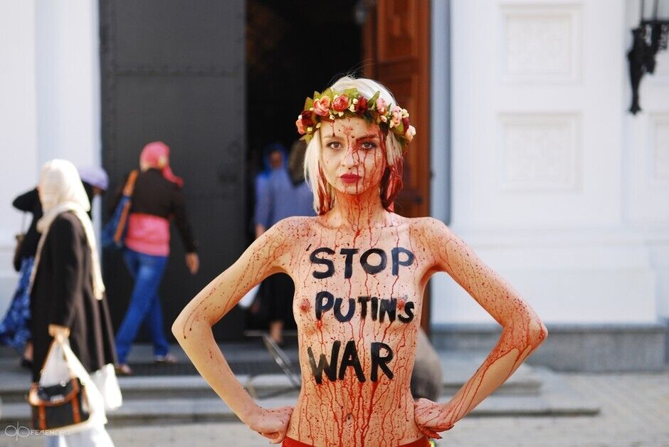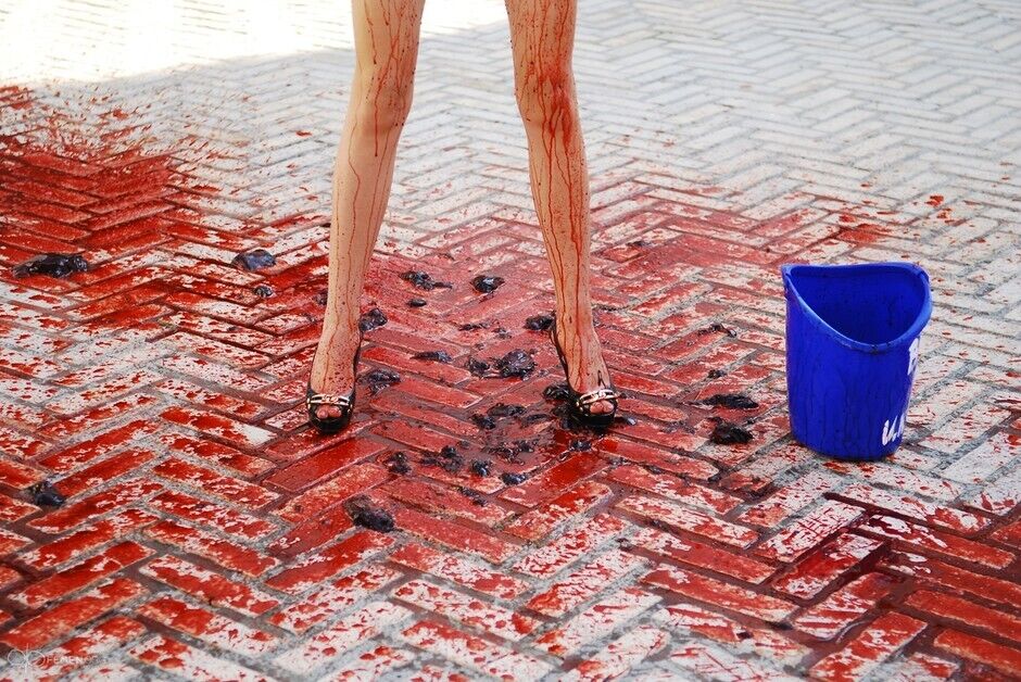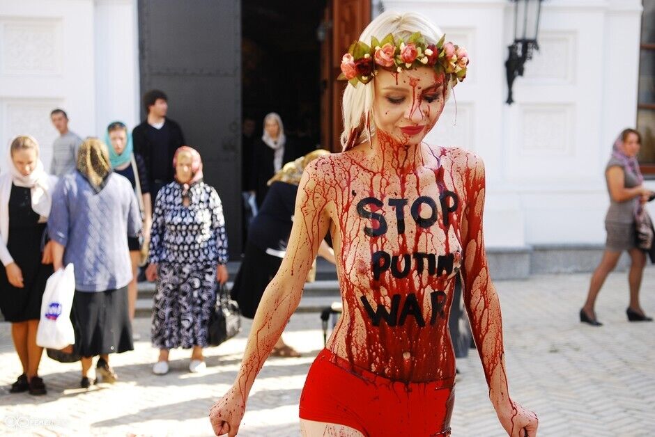 Активистка Femen приняла антипутинский "кровавый душ". Фоторепортаж