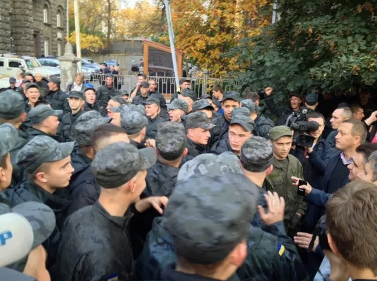 Несколько сотен военнослужащих Национальной гвардии, дислоцированных в части в Новых Петровцах, пришли под Администрацию президента с требованием о демобилизации и выдаче зимней формы.