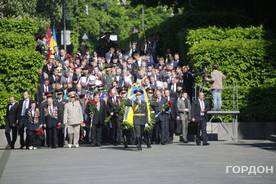 К Вечному огню в Киеве сегодня принесли цветы ветераны, представители власти и бывшие президенты Украины – все, кроме Виктора Януковича.