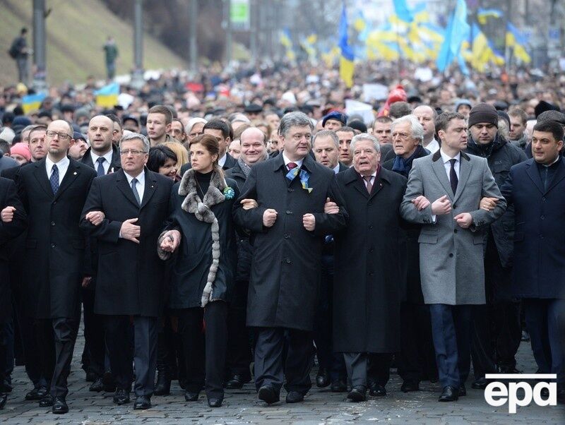 В Киеве прошел Марш достоинства с участием президента Украины Петра Порошенко, президентов Польши – Бронислава Коморовского, Словакии – Андрея Киски, Литвы – Дали Грибаускайте, Европейского совета – Дональда Туска. Участники марша прошли по улицам Институтская, Шелковичная, Грушевского, по Европейской площади и завершили шествие молитвой за мир на Майдане Незалежности. По данным столичной милиции, в мероприятиях приняли участие около 8000 человек.